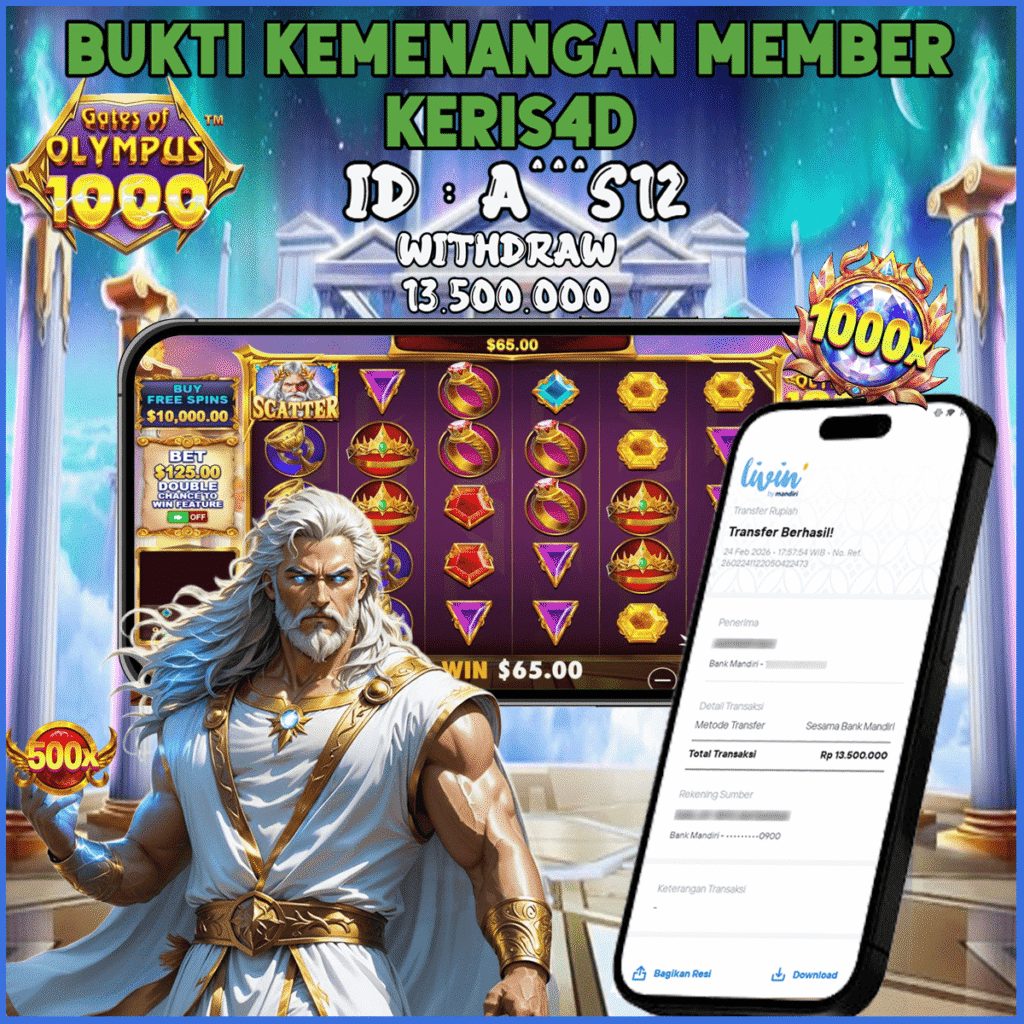 KERIS4D dikenal sebagai situs terpercaya yang selalu menghadirkan pengalaman bermain slot online yang aman, fair, dan berlisensi resmi. Di sini, kami tidak hanya sekadar memberikan janji, tapi bukti nyata berupa slip kemenangan yang dapat Anda lihat secara langsung.