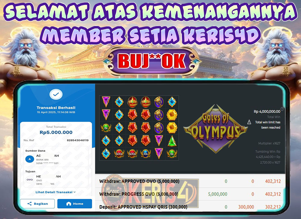 KERIS4D dikenal sebagai situs terpercaya yang selalu menghadirkan pengalaman bermain slot online yang aman, fair, dan berlisensi resmi. Di sini, kami tidak hanya sekadar memberikan janji, tapi bukti nyata berupa slip kemenangan yang dapat Anda lihat secara langsung.