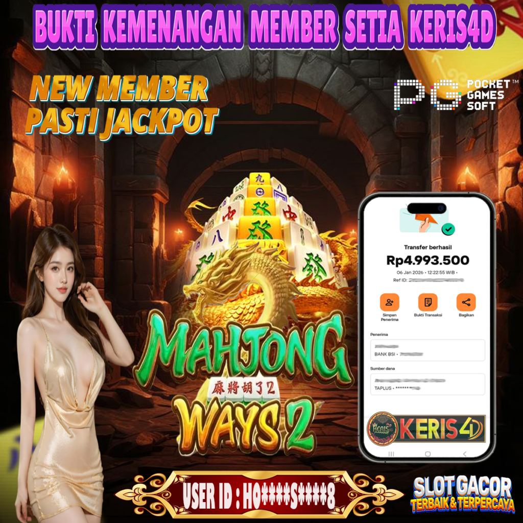 Setiap hari, member KERIS4D berhasil meraih jackpot besar dari berbagai provider slot ternama yang kami sediakan, seperti Pragmatic Play, Habanero, PG Soft, dan masih banyak lagi. Kami secara rutin menampilkan bukti screenshot atau rekapan kemenangan yang berhasil diraih, mulai dari kemenangan ratusan ribu hingga puluhan juta rupiah. Semua slip kemenangan ini kami hadirkan untuk membuktikan bahwa di KERIS4D, peluang menang itu nyata.