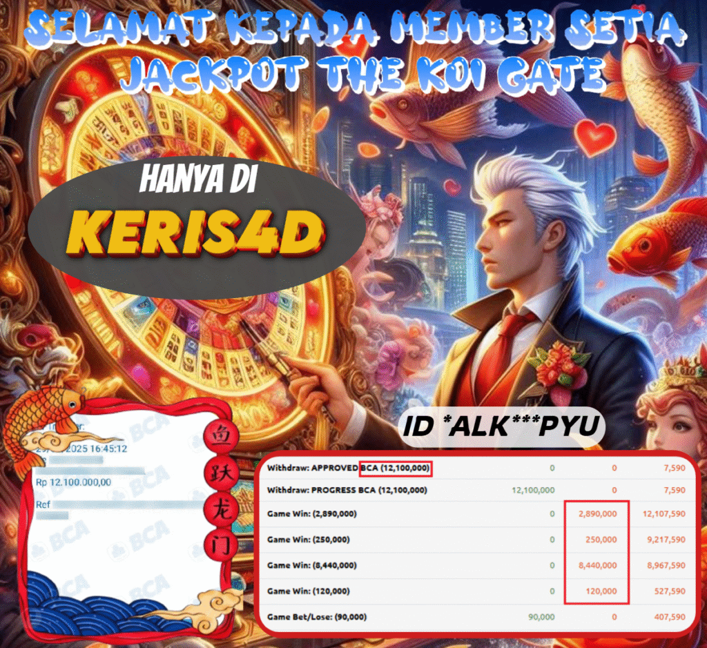 KERIS4D dikenal sebagai situs terpercaya yang selalu menghadirkan pengalaman bermain slot online yang aman, fair, dan berlisensi resmi. Di sini, kami tidak hanya sekadar memberikan janji, tapi bukti nyata berupa slip kemenangan yang dapat Anda lihat secara langsung.