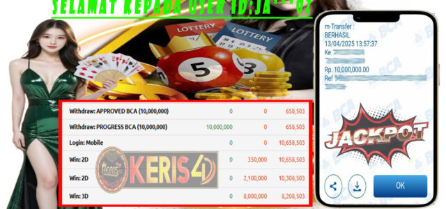 Setiap hari, member KERIS4D berhasil meraih jackpot besar dari berbagai provider slot ternama yang kami sediakan, seperti Pragmatic Play, Habanero, PG Soft, dan masih banyak lagi. Kami secara rutin menampilkan bukti screenshot atau rekapan kemenangan yang berhasil diraih, mulai dari kemenangan ratusan ribu hingga puluhan juta rupiah. Semua slip kemenangan ini kami hadirkan untuk membuktikan bahwa di KERIS4D, peluang menang itu nyata.